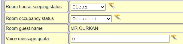 3. Room Data 3.1 RE Room Equipment Status (to PMS): Usage: Sent from Xymphony to Fidelio upon law action Room house keeping (default 8310) + 1 (room require cleaning) or 0 (room ->clean) is dialed from RN to update Room maid status.
