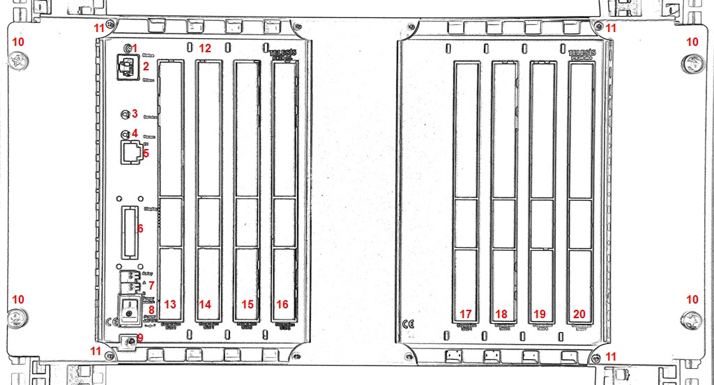 | 11 | Screws fixing the front panel to the system cabinet |
