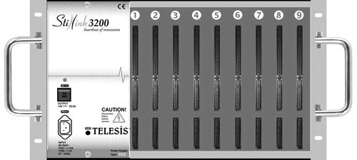 Stillink3200InstallingTheSGSModuleWhen the installation of the SSS power supply module is completed, slide the SGS module into the Slot-1 (see below). If necessary apply a slight force in order to lock the module with the backplane connector. After being sure that the module is locked with the backplane connector, fix the module to the subrack with tightening the screws at the top and bottom in the front panel. To tighten, turn the screw in clockwise until it looks firmed. Do not use an excessive power. To loose, turn the screw in counter-clockwise. Do not use a screwdriver to tighten the screws on the front panel. Front view of the Stillink 3200 subrack after SGS module is installed. |