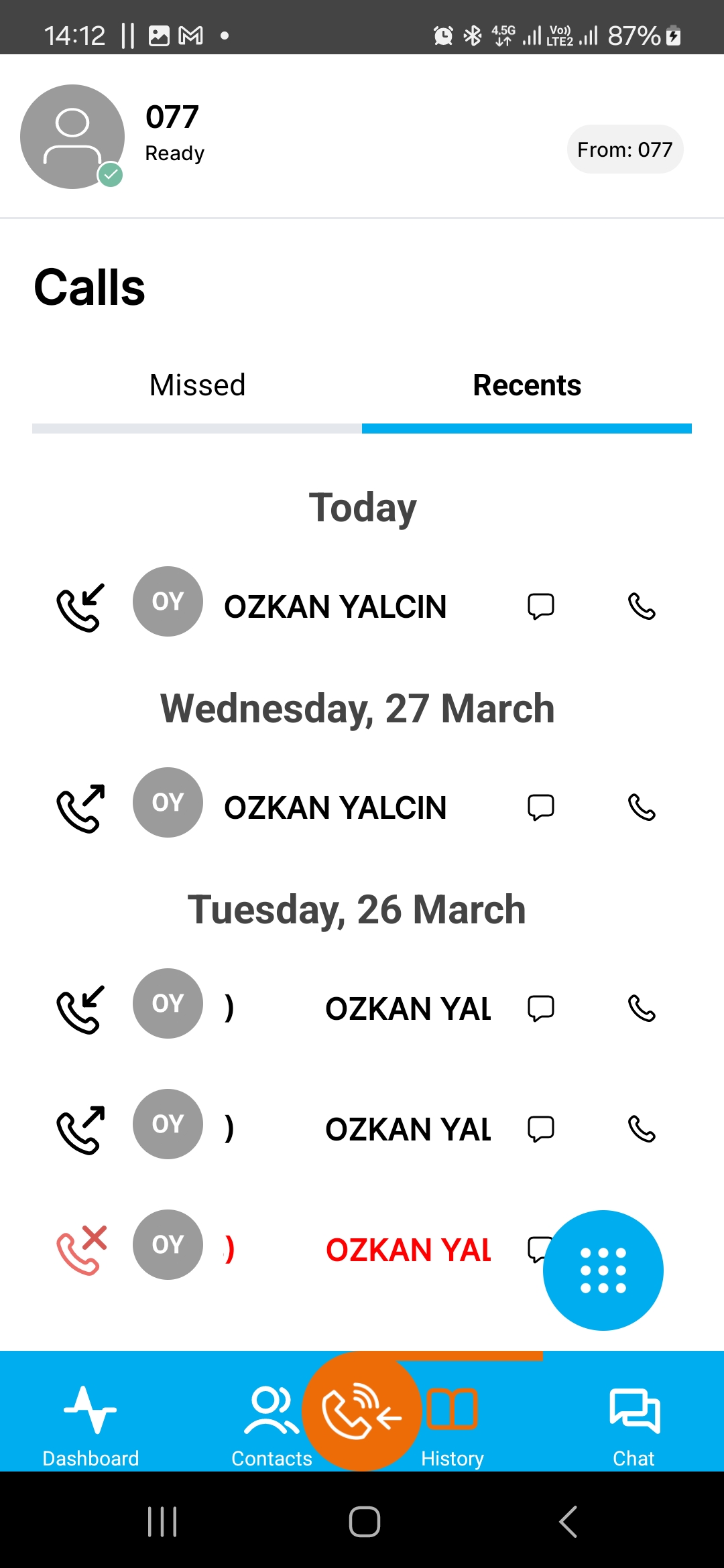 - List of favourite contacts