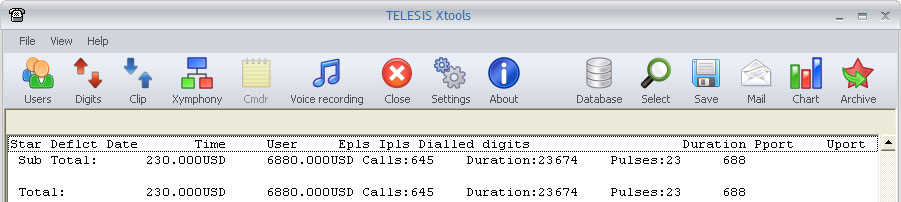 No details : When this checkbox is marked, brief information like total number of calls, total call duration, total charge pulses is listed.