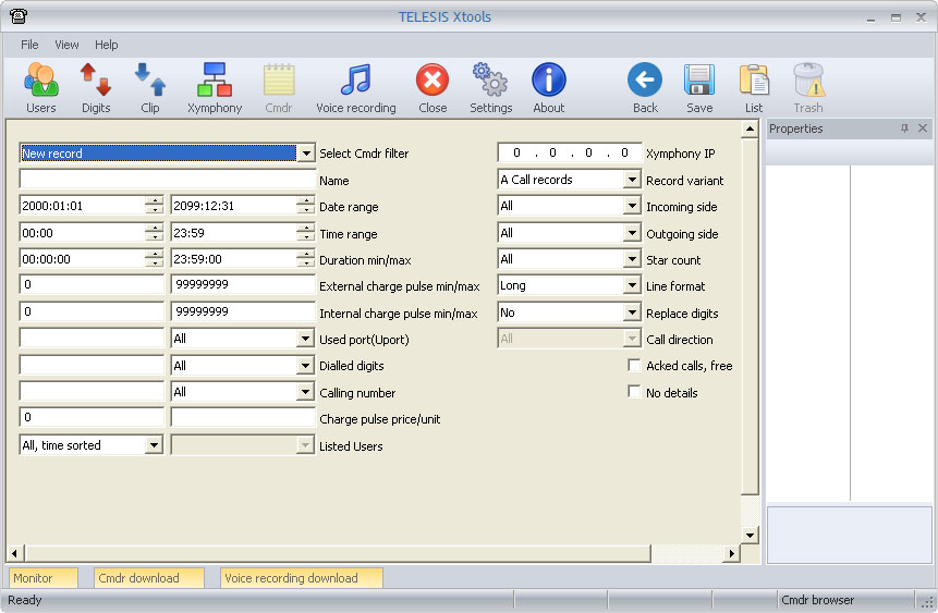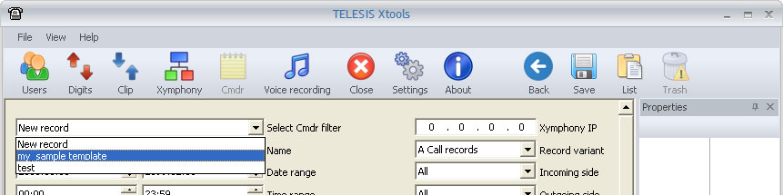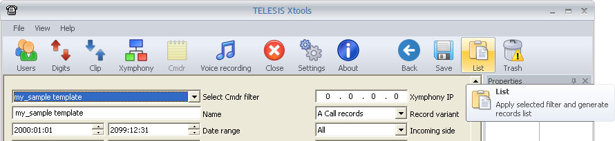 Xymphony IP : The list includes only the records collected from the selected Xymphony IP address. The IP address 0.0.0.0 indicates no IP address check.