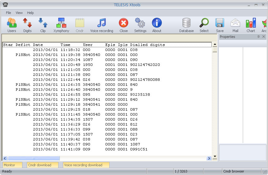 No: Dialed and Calling party number are shown as digits in the list.