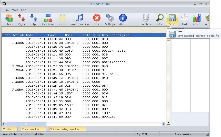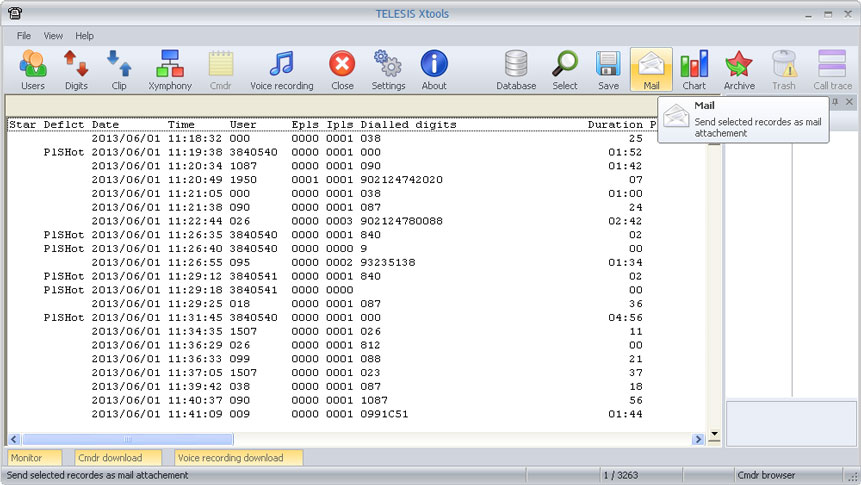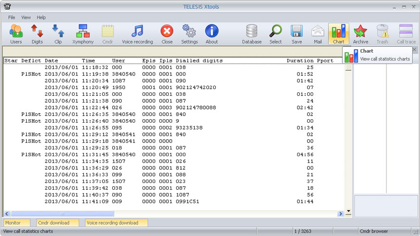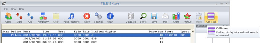 A selected call record may have dependencies to some other call records and voice records. Telesis systems are capable of generating multiple records for a call, which may have been transferred. Call trace function allows to list all records with the same ID value for detailed investigation and evaluation.