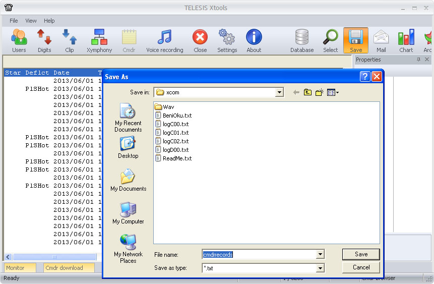 If desired, all listed results (i.e. filtered CMDR records from the connected database) may be saved to a disk file.