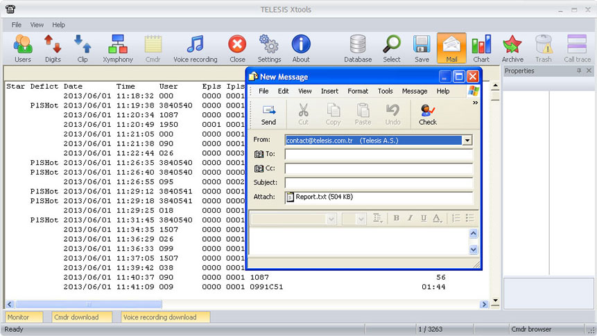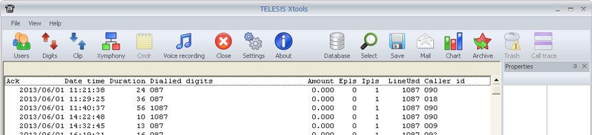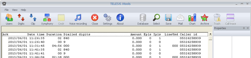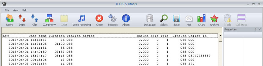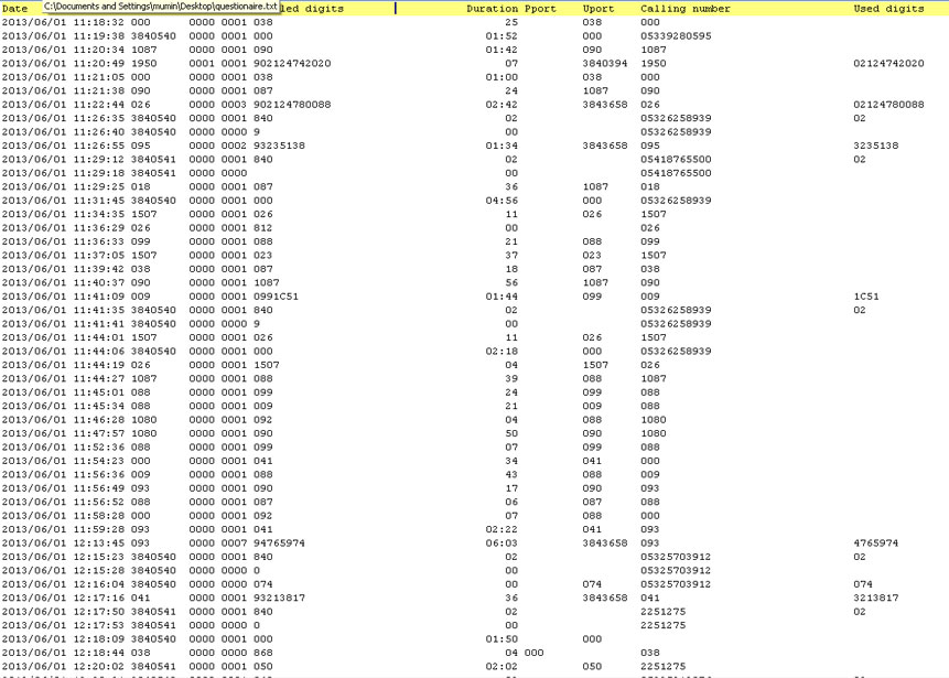 Short line format lists records with some but still very sufficient details like date, time, duration, dialed digits, charge amount, generated charge pulses, incoming charge pulses, used line, and caller id as shown below.