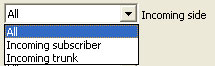Incoming side : The list may include All incoming calls, or only Incoming subscriber calls, or only Incoming trunk calls.