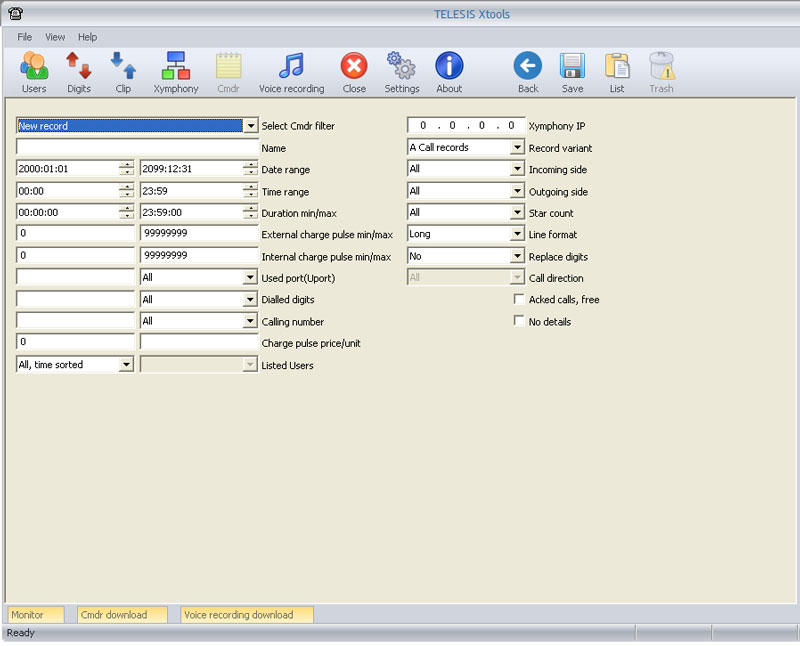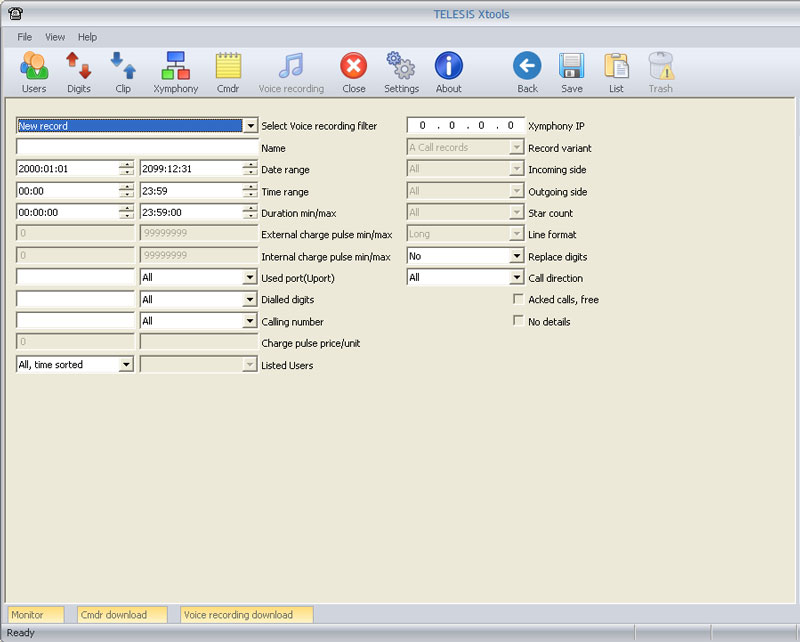XToolsSelectFunctionUsed for filtering CMDR records if a CMDR database is mounted or filtering voice recording files if a voice recording folder is mounted. Select page for CMDR records Select page for voice records It also enables some new sub-functions as shown below. |