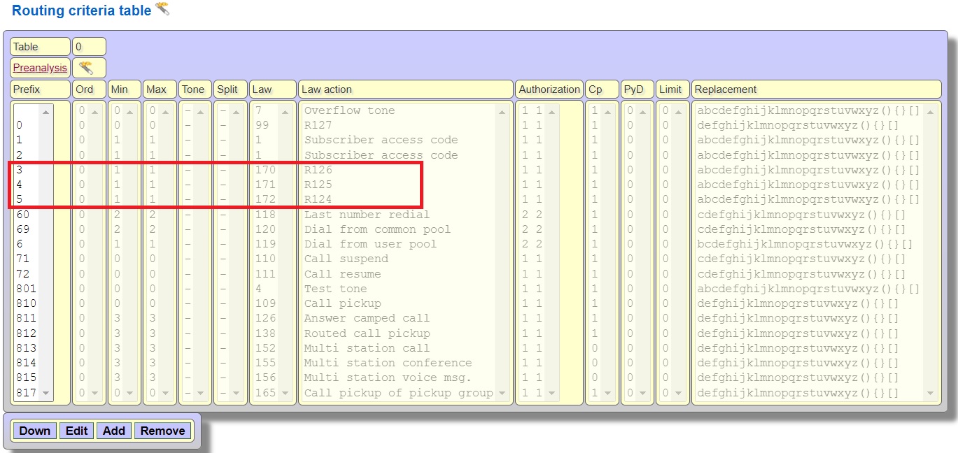 XymphonyProgramming-Example3Activating the Auto attendant from the trunk line, calling sales, technical service and accounting department 1. Click the link below to activate the auto attendant on the trunk line 2. Assume that subscriber 103024 and subscriber 103025 are in the sales group, 103026 and 103027 are in the technical group, 103028 and 103029 are in the accounting group It is necessary to give a route for each group, assume that route 126 for sales group, route 125 for technical group and route 124 for accounting group. Route is given from common propeties page, use Users / Find from the main page and write 103024 and click common properties ![]() ![]() Write 126 in used in route text box and press OK button ![]() Give route on 103025 (R126), 103026, 103027 (R125), 103028 and 103029 (R124) with the same method In factory settings, all trunks use routing criteria table 1, for this reason, it is necessary to process in Table 1 Press Routing / Table from the main page ![]() Select Routing criteria table 1 and press OK button ![]() Select prefix 3 and press Edit button ![]() Press Unused button to give a law number that has not been used before ![]() Select 1 for Required authorization-Day and Night, select R126 in law action list box ![]() In same way, use prefix 4 for R125 and prefix 5 for R124 ![]() |