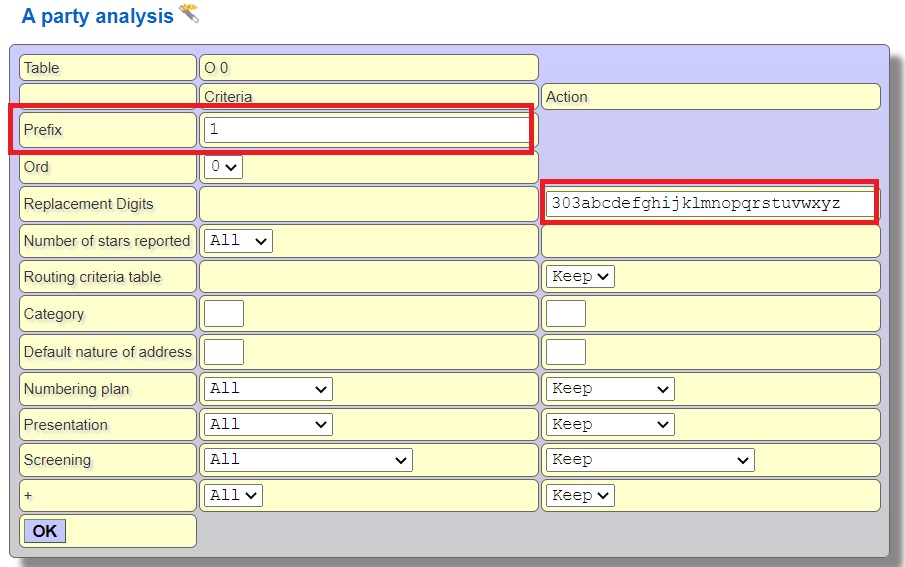 XymphonyProgramming-PRIISDNConnectionIf the exchange will be connected to the Network (master) with DSS-1 pri; 1. RJ45 connector should be prepared for the E1 port of the exchange, E1 Pinout of RJ45 Connectors In Telesis Systems 2. Select E1 DSS1 under users on the main page ![]() Select Access code of PRI and click Common button ![]() Select E1 isdn DSS1 Primary rate TE (if it will be connected to the network (master) and click Apply button ![]() Open the E1 status page to check the PRI status ![]() If the connection is successful, the date and time are displayed in the sync time column on the E1 status page. ![]() 3. On the System/Basic page, select the E1 port where the exchange will receive the synchronization from the digital trunk list box for Synchronization When you enter the System/Basic page, if the exchange provides synchronization from the selected E1 port, the E1 port number is displayed in the Synchronization status field, if the synchronization is not achieved, Free running text is displayed. ![]() A party table (from common properties) should be used to edit the calling party number of subscribers when routing the PRI Use a table number in A party analysis on og. call. You can use table number between 0-126. press OK at the bottom of the page ![]() Enter the common properties page again and press the Edit button of the table number You may view entries (i.e. rows) of the A party analysis table in this page. You may add a new entry with using Add button, or remove an entry using Remove button, or edit the contents of a row with using Edit button. Adding a new record inserts an A party analysis entry to the top of the table with all fields set to default values and prefix set to "0000000000000000". To complete the process, you should select that record and edit it. For example, if subscriber numbers start with 1000 and DID numbers are between 3031000-3031999, press Add button ![]() Select prefix "0000000000000000" and press Edit button ![]() Change Prefix with 1 and add 303 in front of replacement digits. ![]() Note: With the Realtime Protocol Analysis feature in Telesis systems, it is possible to monitor any TDM interface by decoding signaling or protocol existing on it. XTools is the GUI for this feature integrated Realtime Protocol Analyzer. |