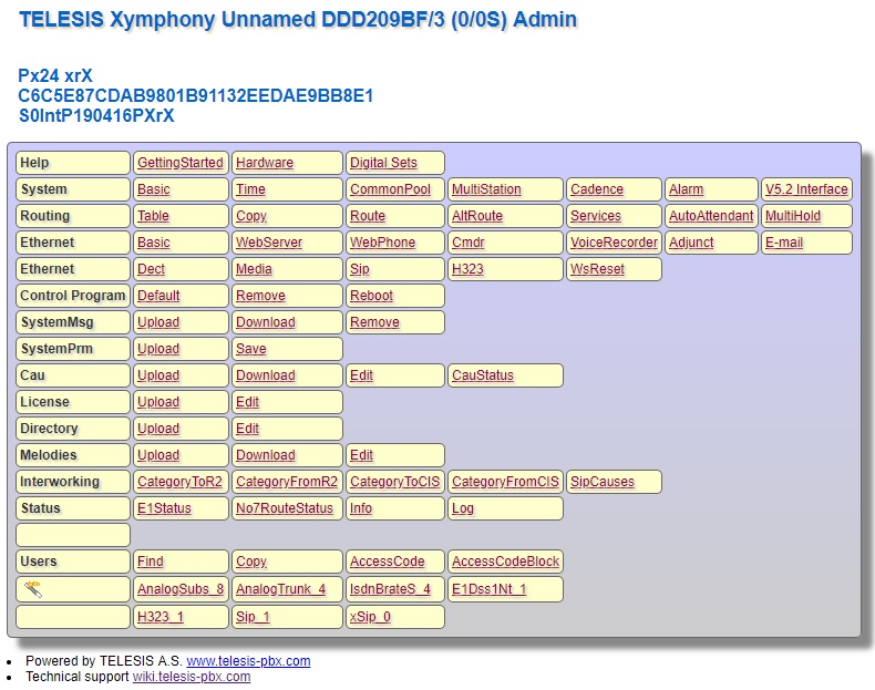 If Homepage is accessed for a Telesis system with the factory default parameters, it shows E1 interface as E1Dss1NT_NNN. There, NNN indicates the total number of E1 voice channels available in the system.